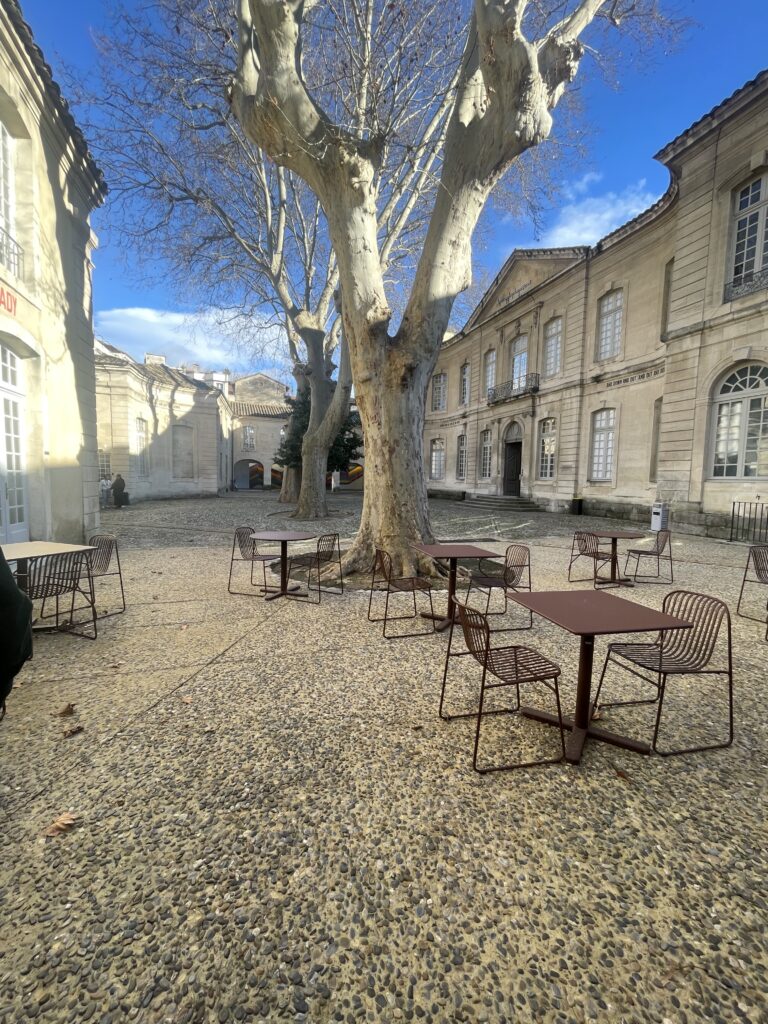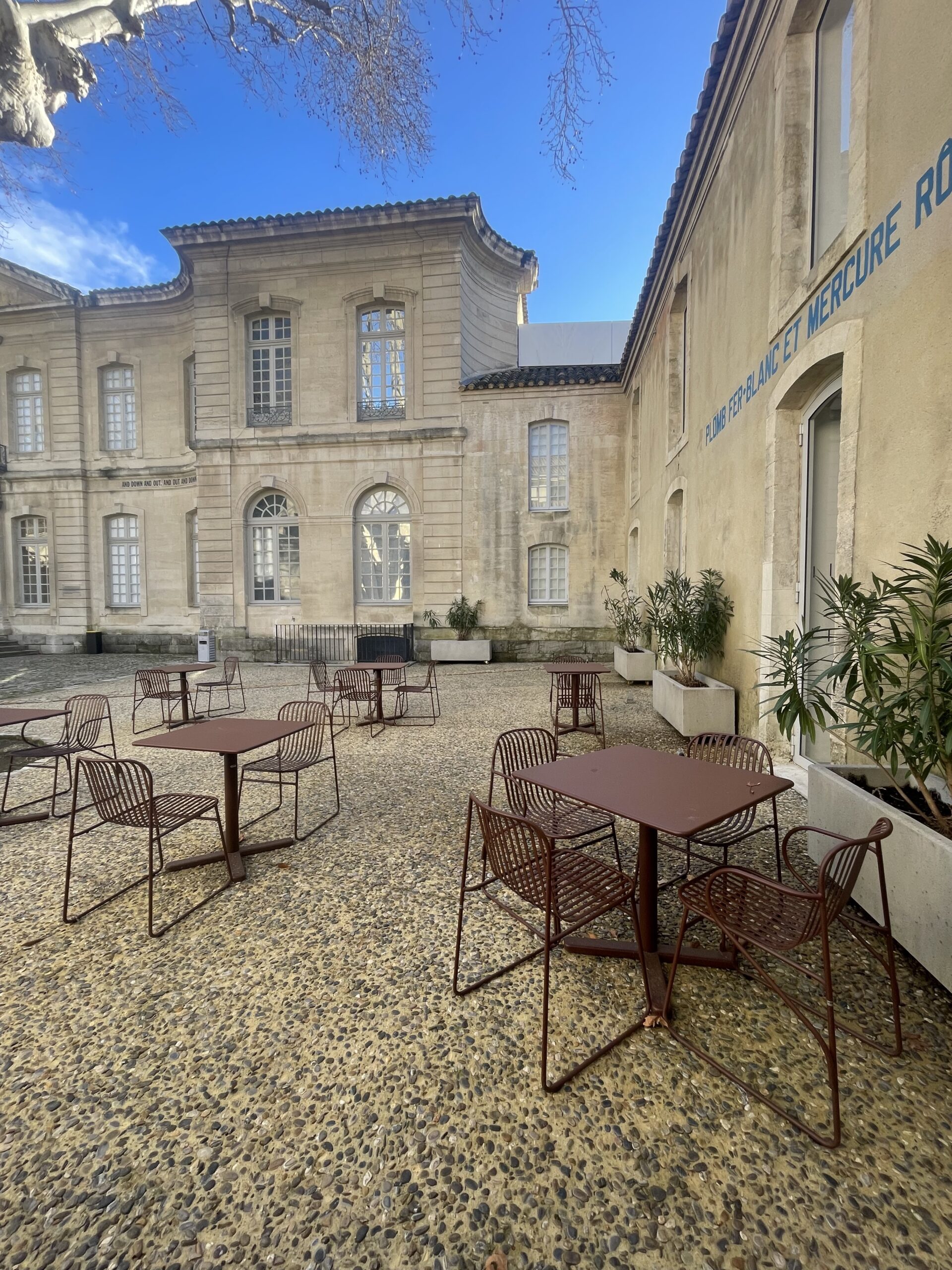 Les clients ont fait appel à notre Studio pour penser l’aménagement de l’extérieur de leur nouveau restaurant. Placé dans l’enceinte de la célèbre Collection Lambert à Avignon, l’espace extérieur attenant au restaurant contient beaucoup de contraintes. Notamment, il est interdit d’accrocher des luminaires ou déco sur les façades ni sur les platanes, ce qui inquiétait mes clients. Le restaurant gastronomique sera ouvert le midi et le soir, donc il faut penser tout l’aménagement autour de la diffusion de la lumière et de l’ambiance et surtout, il doit attirer l’oeil et faire parler de lui.