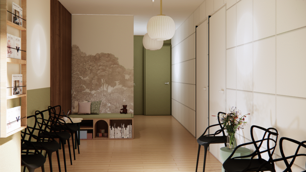 L’ensemble crée une atmosphère chaleureuse, conviviale et rassurante, permettant aux enfants de patienter en toute sérénité et aux parents de profiter d’un moment d’attente plus paisible.